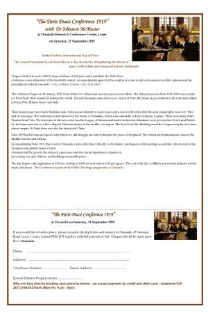 “The Paris Peace Conference 1919” with Dr Johnston McMaster is at Drumalis Retreat and Conference Centre, Larne, on Saturday 21 September 2019.